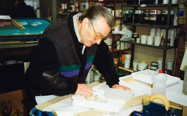 Nel 1968 apre il suo laboratorio di serigrafia e comincia ad entrare in contatto con il mondo artistico veneziano.
