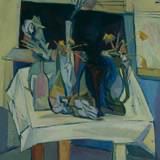 Non è questa però la sede per percorrere stilisticamente una così ampia ricerca, un percorso mutatosi nel tempo. Piace ricordare l’immane impatto dei colori e della scomposizione del grande Burcier del 1953 spintosi al limite sintetico delle poetiche neocubiste e realistiche, simbolo di un interesse concreto dell’autore verso il mondo dell’uomo, del lavoro, della manualità. Questo breve omaggio presenta inoltre un percorso cronologico costruito sul tema delle nature morte che giungono sino agli ultimi anni, alcune delle quali presentano, in cromie accese, la sintesi di un fiore, il suo “ canto alto ”, ad un passo dal disperdersi come oggetto vegetale ed al divenire una apparizione dolorosa, un segno della memoria. Uno sguardo agli oggetti che li supera, investendoli di una forza costruita tutta dalla pittura, il vero campo infinito della ricerca, del sentimento espressivo. Uno sguardo che abbiamo voluto omaggiare seppur procedendo per emblemi in questo primo momento di nuova conoscenza dell’ autore che, non poteva non avvenire in presenza delle opere, della sua vita artistica e dell’ evocazione presente della sua figura, tracciata in magistrali autoritratti, accesi da uno sguardo carico di pensiero e di meditazione dedicata alle possibilità d’esprimere un mondo ed un universo di passioni attraverso la pittura.