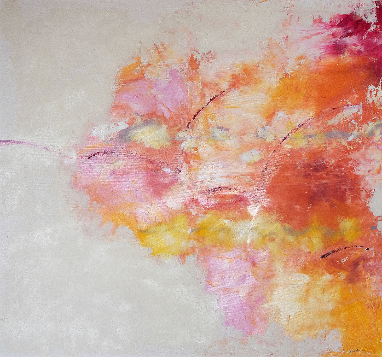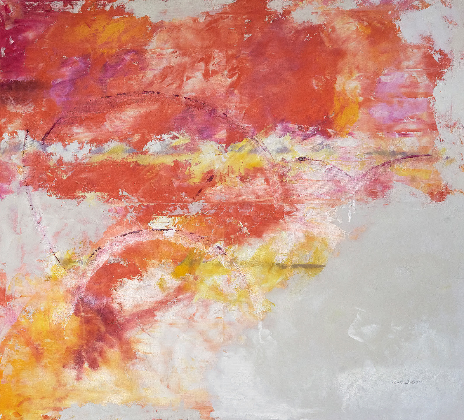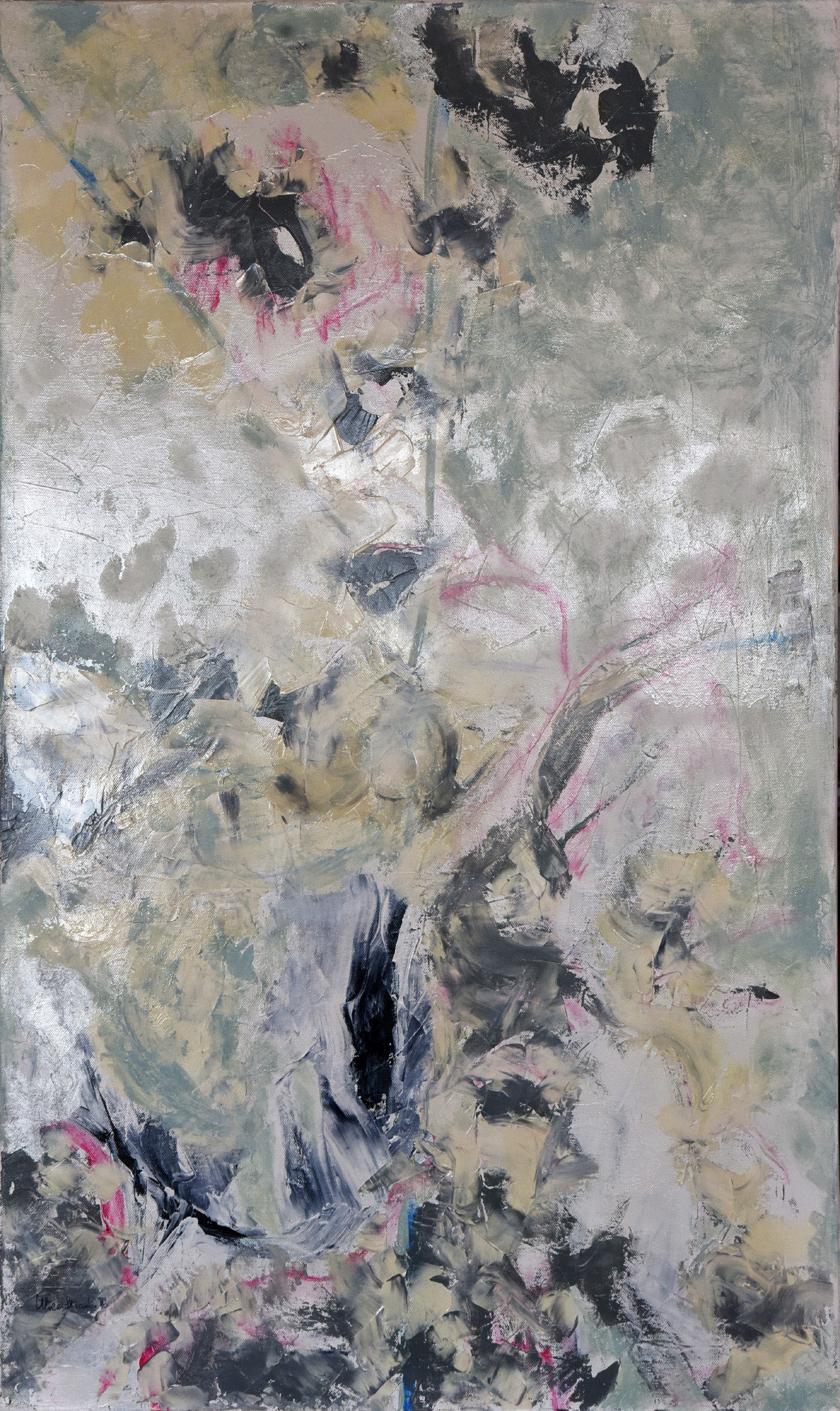 l'acqua dirigendo il suo corso e talvolta si perde nella creazione di elaborate trame. La sua non è pittura astratta gestuale ed emotiva ma piuttosto una pittura contemplativa, che fa ricorso alle immagini dell'inconscio nelle sue infinite possibilità.