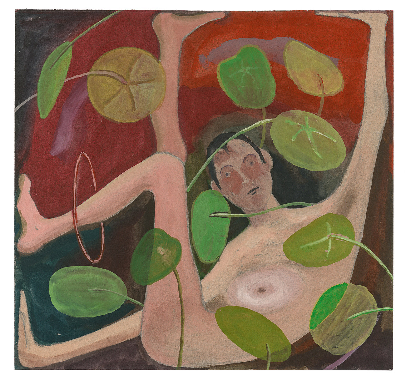 Si preoccupa del suoni dei colori, e il suono è accordato più in minore che in maggiore, è rilassato,ma questo prima di un foglio scuro. I suoi quadri non sono mai leggeri, mai giocherelloni, sempre a terra, caldi, pieni di corpo. Anche se preferisce usare gli acquerelli, la sua applicazione di vernice non è trasparente. La sostanza colorata è densa, satura piena di forza. Le dinamiche della linea di oscillazione libera fino all’arabesco, tutte le tradizioni della pittura che si dissolvono nella forma, ma anche ogni tipo di stimolo sensuale voluttuoso barocco le sono estranee. I suoi motivi formali sono arcaicamente semplici, carichi del potere evocativo dell’elementare.