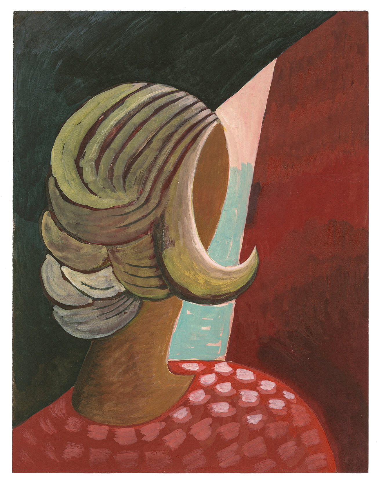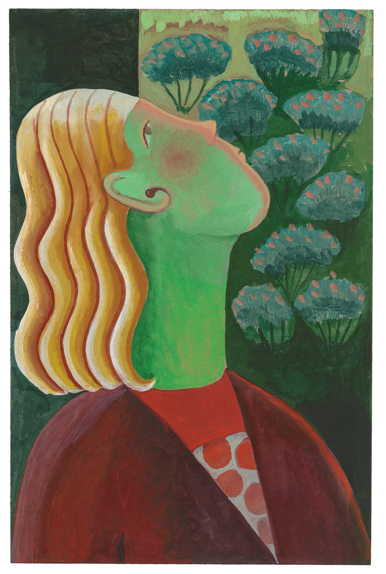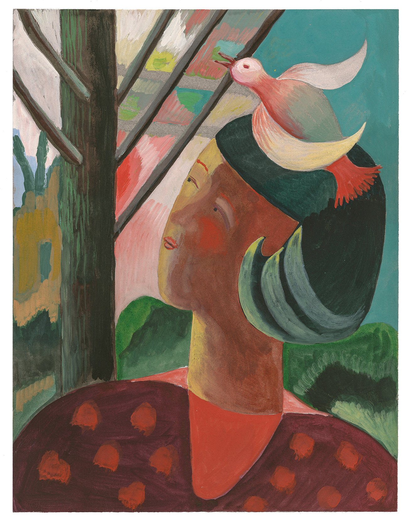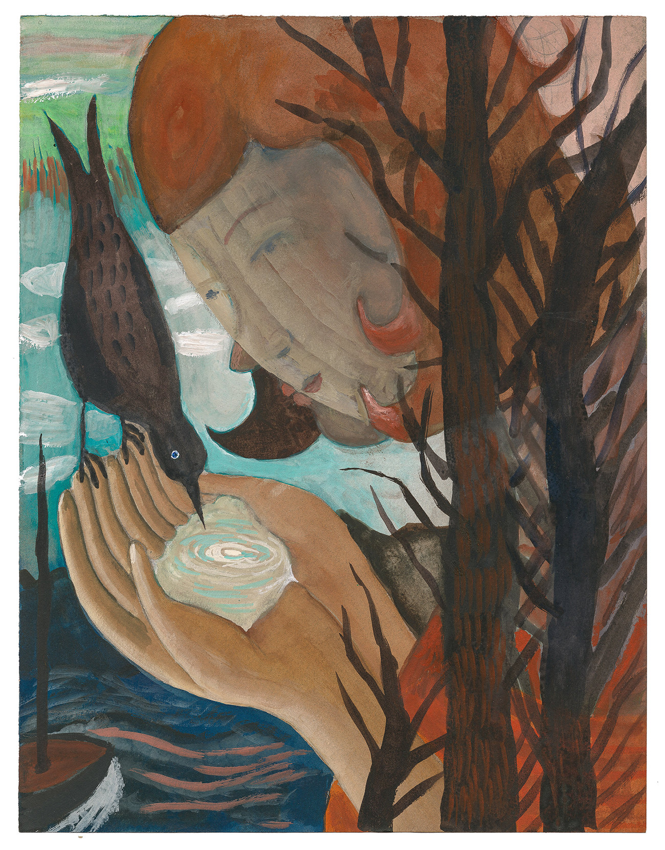 Il mondo pittorico di mia moglie è principalmente di natura privata. Il suo saggio d’esame si intitolava “Un diario pittorico” e conteneva disegni, acquerelli e fotografie, il tutto in un formato piuttosto piccolo e intimo. Ancora oggi le sue opere sono create sotto forma di appunti. Alla maniera di un diario, a questo lavoro pittorico corrisponde il piccolo formato, che lo spettatore deve avvicinarsi in modo che le persone si avvicinino solo quando hanno acquisito una maggiore familiarità. Il fatto che alla fine siano state create anche altre immagini di grande formato che possono essere percepite a distanza e che possono anche dispiegare il loro potere in una spazio più grande e meno privato è un nuovo sviluppo. Si tratta di ingrandimenti di piccoli originali di prima, per cui il posto dell’acquerello è stato preso dalla tempera all’uovo, che nella sua superficie opaca ricorda quasi la pittura ad affresco.