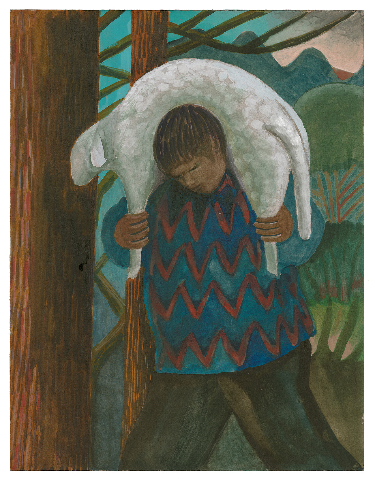 Anche se è in grado di spiegare e applicare precise regole prospettiche, le dimentica quando si crea un’immagine. Poi pensa in termini di tonalità di colore e di valori tonali, di forme superficiali e di rapporti di forma. Le regole del visibile vengono infrante a favore dell’espressione e della chiarezza della narrazione. Il riferimento superficiale del mondo pittorico può ricordare i pittori del primo Rinascimento, che riferivano di questo mondo, ma non lo facevano mai senza perdere il loro legame con un terreno spirituale e quindi con la superficie.