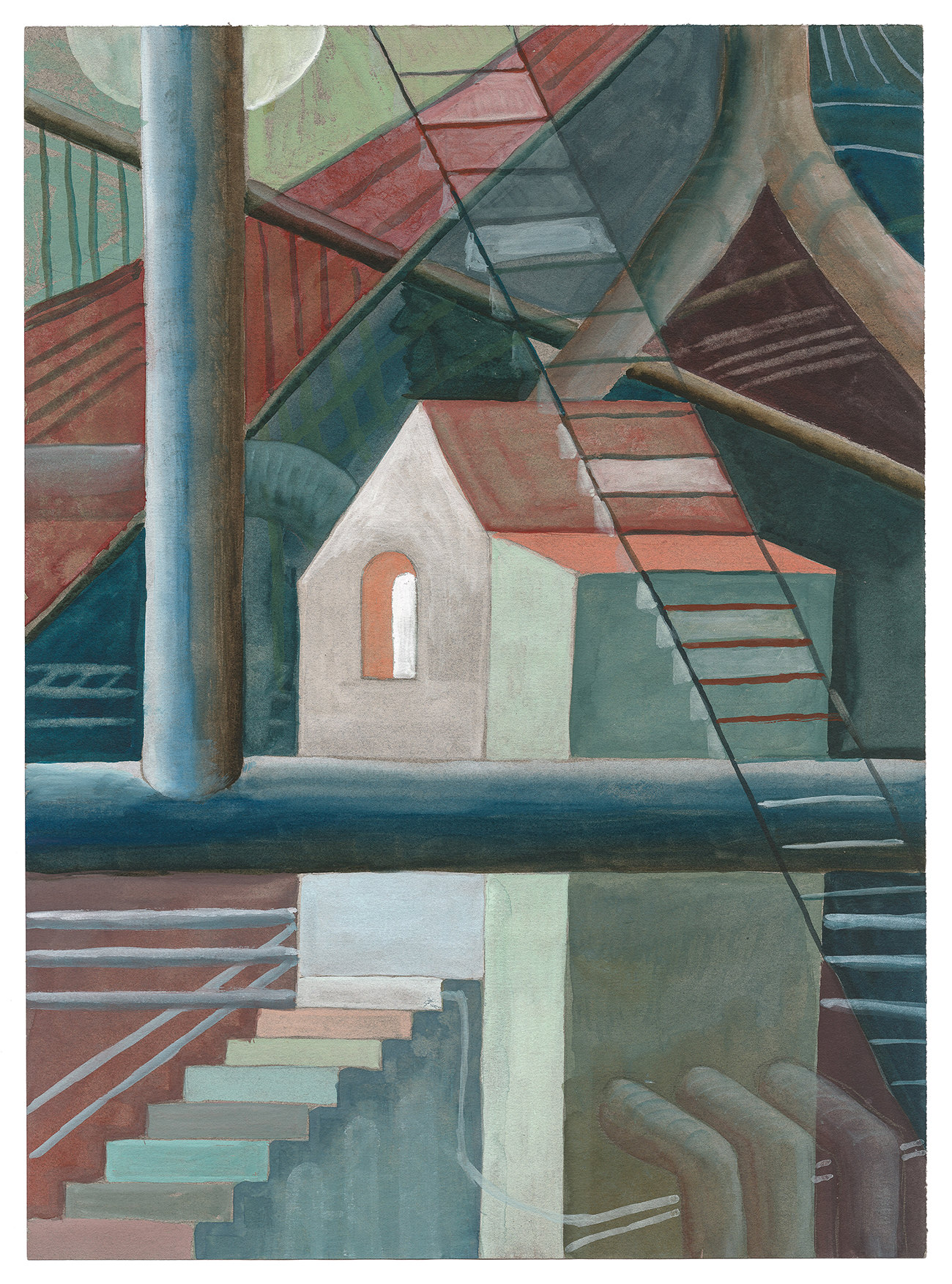 Durante la sua tesi di laurea al temine dei suoi studi, è stata la piccola isola danese di Aero, nel cui ambiente rurale è riuscita a trasformare ciò che aveva visto e dove ha saputo condensare il motivo al suo contenuto espressivo. A quel tempo il suo mondo formale era più arrotondato, la sua pittura più pittorica. Ora, dopo quasi trent’anni, è l’”isola della città” di Venezia che ha sceto come rifugio per un dipinto che è diventato più geometrico e sagomato.