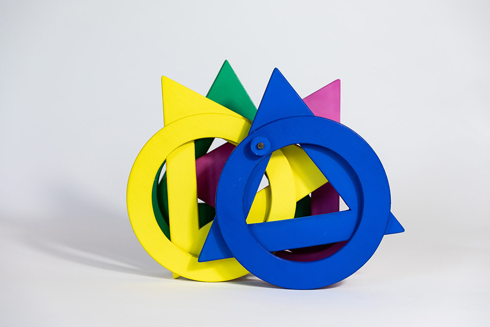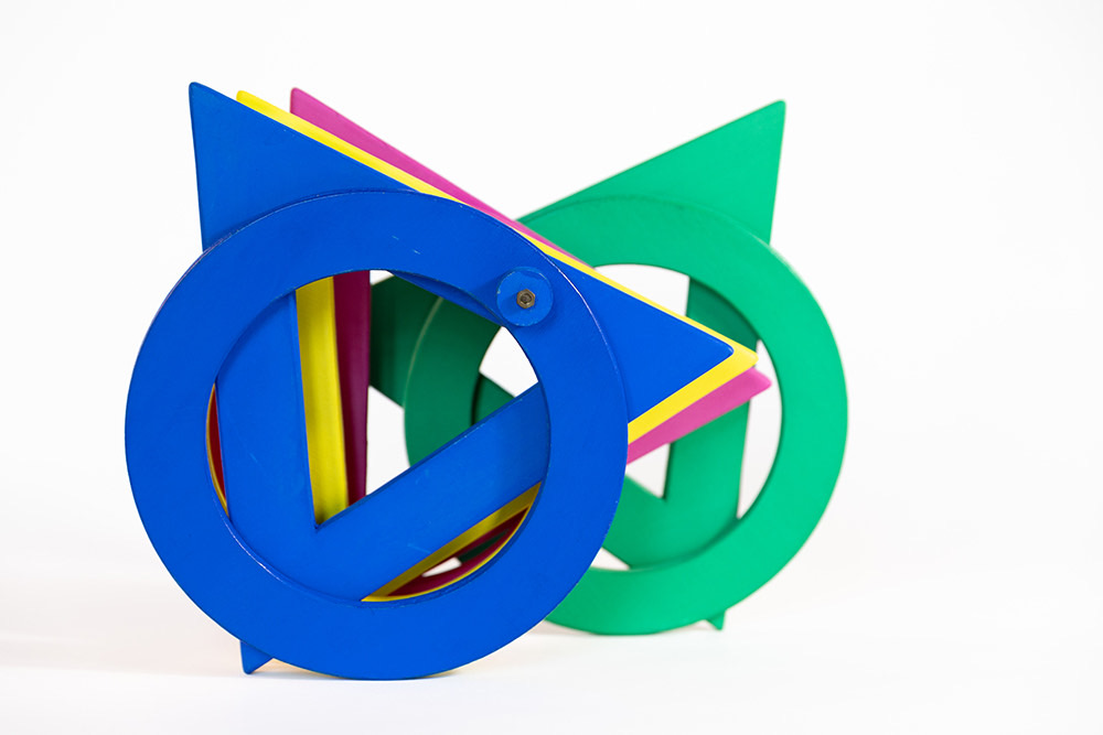 Come ha sottolineato Bruno Munari (1907-1998), “il metodo progettuale non è altro che una serie di operazioni necessarie, disposte in un ordine logico dettato dall’esperienza. […] Creatività non vuol dire improvvisazione senza metodo”. Guaccero, grazie al suo spirito pratico, riesce a coniugare fantasia e creatività, a tale proposito riportiamo ancora le parole di Munari che risultano chiarificatrici: “La fantasia è una facoltà dello spirito capace di inventare immagini mentali diverse dalla realtà nei particolari o nell’insieme; immagini che possono anche essere irrealizzabili praticamente. La creatività è una capacità produttiva dove fantasia e ragione sono collegate per cui il risultato che si ottiene è sempre realizzabile praticamente”. Ogni singolo pezzo di legno utilizzato per dare vita ai Pupazzi, realizzati tra il 1985 e il 1990, è stato progettato, disegnato, ritagliato, lavorato, levigato con grande attenzione e precisione, dipinto con colori a tempera e poi assemblato. Questi assemblaggi di forme mettono ben in evidenza le loro particolari caratteristiche tecniche, a volte complesse, ma anche quelle materiche, cromatiche e tattili. Proprio quest’ultimo aspetto sottolinea che grazie alla manipolazione queste creature articolate possono muoversi e cambiare il loro aspetto. In questi lavori è, infatti, insita la possibilità che ogni Pupazzo possa essere trasformato in qualcosa d’altro, e a vedere trasformare le cose si rimane creativi e non ci si annoia mai.