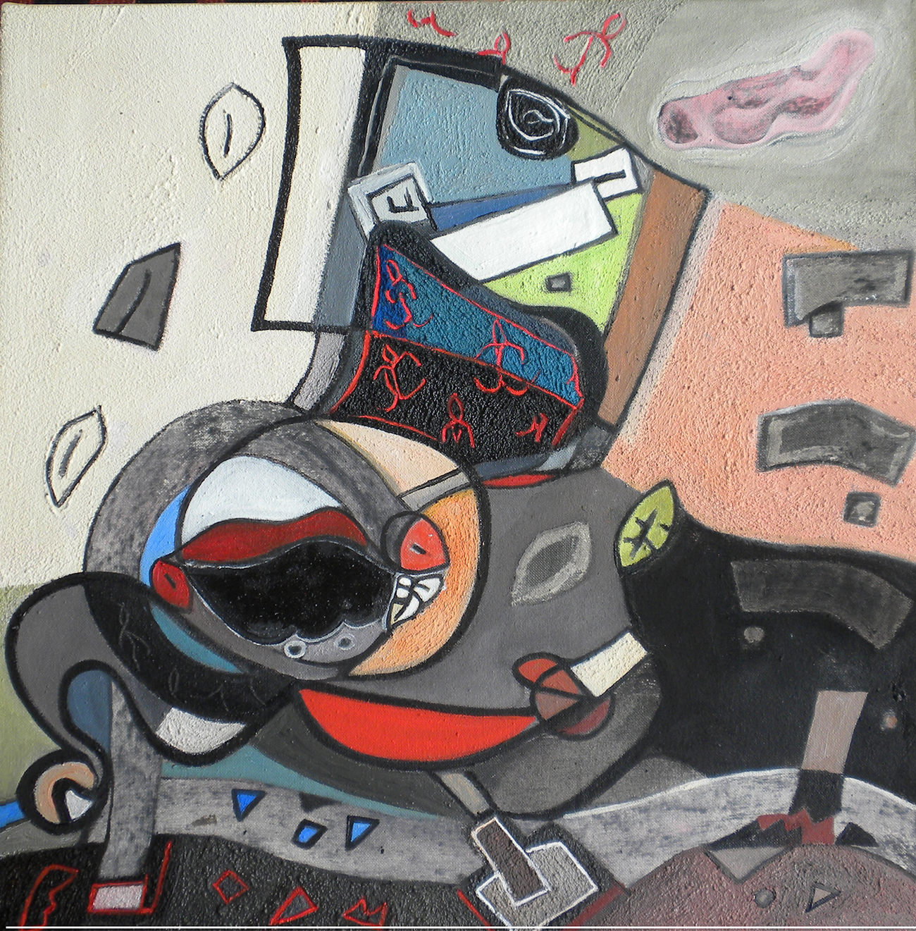 Questi oggetti-forme, delimitati da nette linee di contorno, determinano un contesto di incontro inusuale, occupano lo spazio sovrapponendosi, fondendosi l’uno dentro l’altro ma rispettando ognuno la propria identità così cara all’artista che intenzionalmente ne sottolinea le affinità e le differenze.