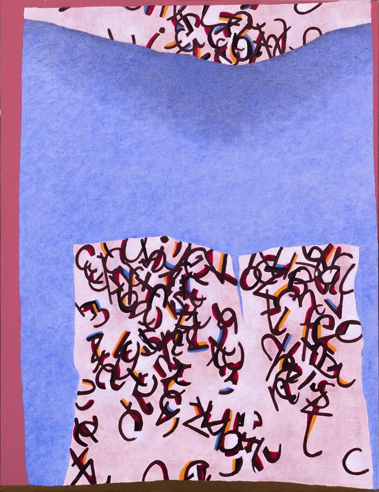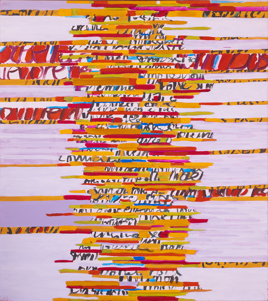 La mia pittura fatta di segni colorati, di parole deformate o cancellate, di parole che hanno perso il suono per acquistare corpo, vuole dare voce ad un desiderio di de-scrivere e comunicare cercando parole nuove e forme che appartengono alla contemporaneità.