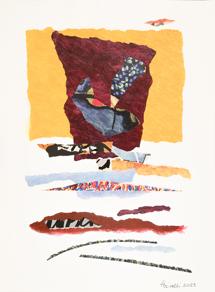 Negli miei ultimi lavori, prevalentemente a collage, la forma e la composizione hanno dialogato con il segno e il colore creando nuove dinamiche espressive.