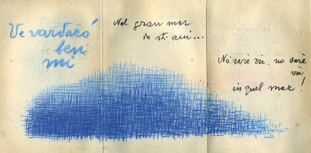Veniva dunque evidenziata la stretta relazione tra la parola poetica e il segno che a questa può corrispondere, come risulta evidente anche quando l’artista traduce in segni-colori-forme, di cui vengono qui presentati significativi esempi, l’emozione prodotta dai versi “Portéme via...” di Giacomo Noventa.