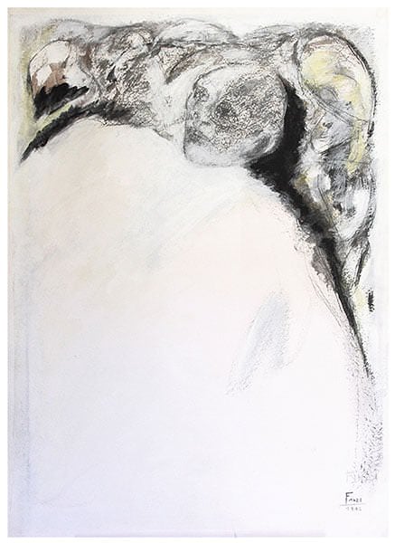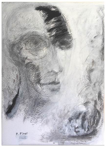 Ciò risulta evidente anche nel volto malinconico che campeggia su di un grande spazio bianco, sottolineando drammaticamente il rapporto chiaro – scuro, vuoto (bianco) e pieno (segni-figure scure). Un giovane torso maschile fluttua in un "soffice" spazio bianco, improvvisa e fugace apparizione.