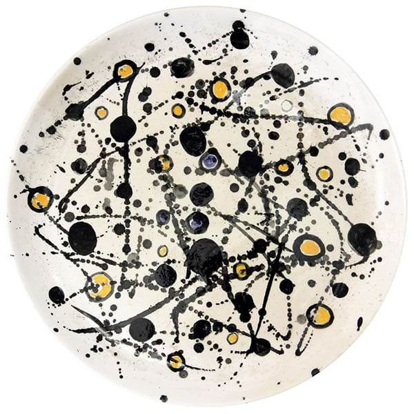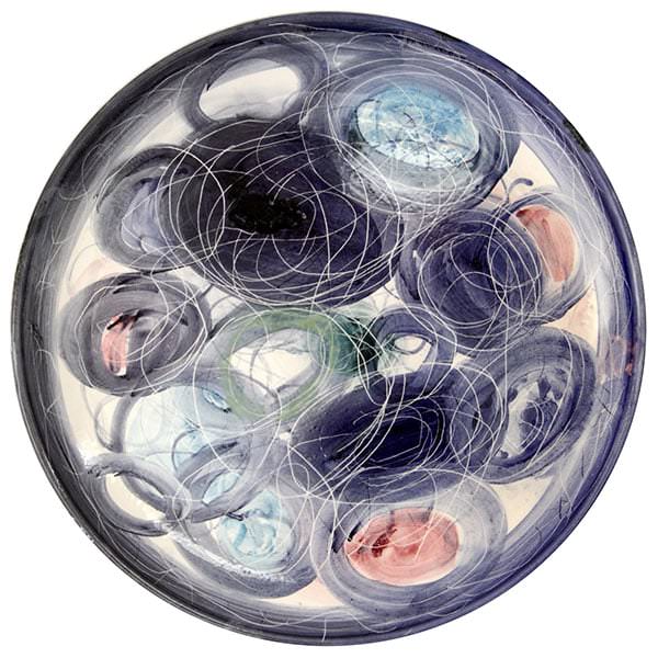 Sulla superficie che le accoglie, queste forme polverizzate, realizzate con il nebulizzatore, continuamente si disciolgono e si ricompongono, presentandosi come elementi puri, quasi immateriali: non plastici ma di colore senza fine. Ad un linguaggio astratto si ricollegano anche alcuni piatti in ceramica decorati, come ha notato Iacopo Fasolo, secondo un gusto "spazialista" e informale. In questi risultano evidenti diversi aspetti delle sue sperimentazioni: l'utilizzo libero del segno vorticosamente tracciato nella materia, che ricorda le matasse di Crippa ma in versione più lirica e meno drammatica, l'uso del colore fatto cadere a gocce, che attesta una personale interpretazione del dripping di Pollock, e un vivace gusto decorativo che si risolve in uno spontaneo gioco di macchie cromatiche. Alle opere astratte si accompagnano alcune opere figurative realizzate nei primi anni Novanta e nel nuovo millennio. I soggetti sono volti e figure umane. Un volto espressivo e plastico, raffigurato con cupe orbite oculari in cui sono raccolti grandi occhi spalancati che ci scrutano, testimonia una vena espressionista che attraversa la ricerca di Peggy.